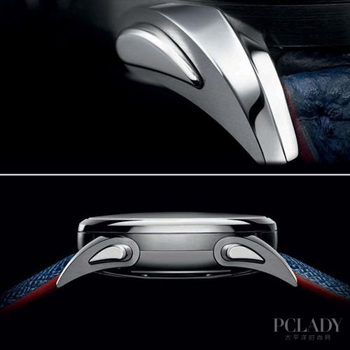 在无限深邃色彩的表盘上搭配的是鲜红色指针,与6点钟位置红黑色的Bugatti标识彼此呼应。这种对比效果还进一步体现在爱马仕压纹小牛皮表带上,其缝线采用了和表盘指针同样的鲜红色,与表带本身的宝石蓝色交相辉映。最后,表扣也经过了全新的设计,采用了汽车格栅的造型。同其所映像的赛车一样,Bugatti Aérolithe腕表配备了飞返模块,180度偏置,这样使用更为方便。Bugatti Aérolithe的表壳比该品牌其他计时秒表的表壳更簿,其轮廓线经过重新设计后变得更纤细、更高雅,呼应了汽车的迷人曲线。由此,Bugatti汽车的基因全方位展现于配戴者的腕间。