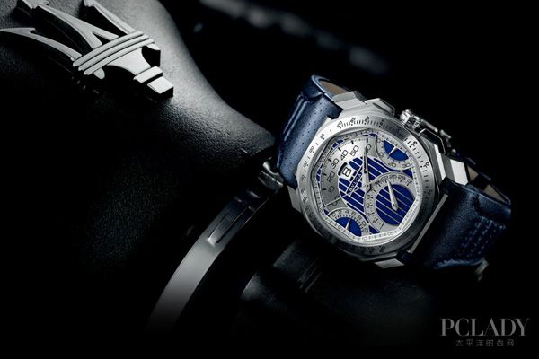 系出名门、技术繁复的Octo Maserati高级钟表深刻演绎引领顶级车厂打造绝世车款的精神。整个结构与八角形设计线条融为一体,谨慎地雕琢出表冠的造型。表圈的部分加上刻度,而面盘则临摹的是蒙地拿玛莎拉蒂工厂监制之顶级运动跑车车头前方的设计。极度精密的机械结构中,每一处细节均呼应宝格丽与玛莎拉蒂的品牌核心原则。