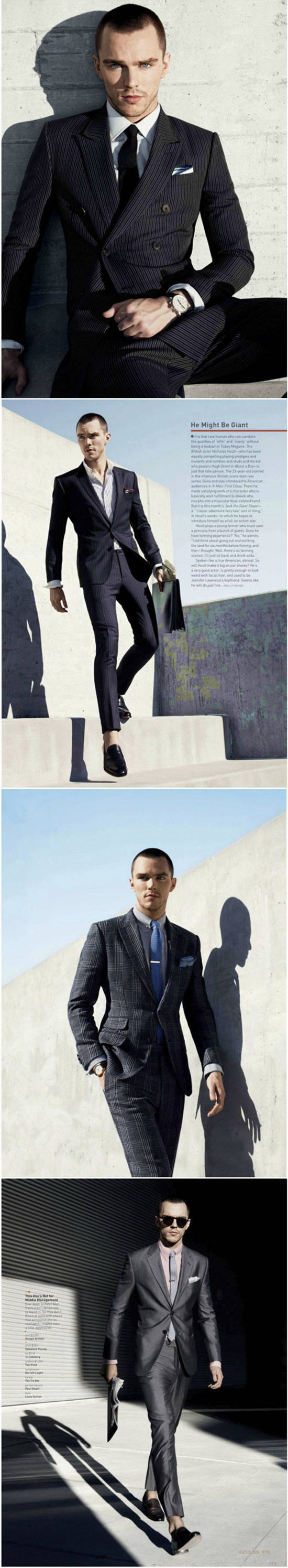 沉寂了一段时间的他,2013年带着新片《Warm Bodies》又重回公众视野时,不仅又剪短了头发,而且还留了胡茬,灰色暗格纹Tom Ford套装憋得如此丝丝入扣,像蝉丝面膜般裹着他,有种错觉,这衣服本来就跟他是一体的。