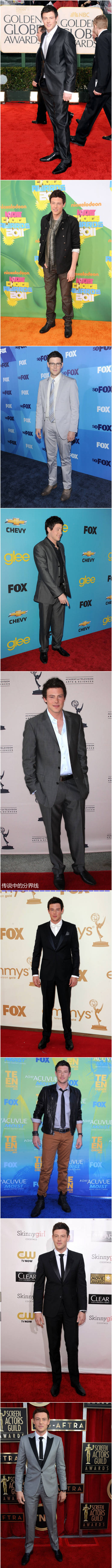 再拿一位重洋彼岸的美国男星来做例子,Glee中的Cory Monteith(没错他就是一年前因嗑药身亡的男星,但这里我们只看穿着,不谈生活作风),他从一位保险业务员打扮的土包子,到正常清爽型男的蜕变史,也十分励志。