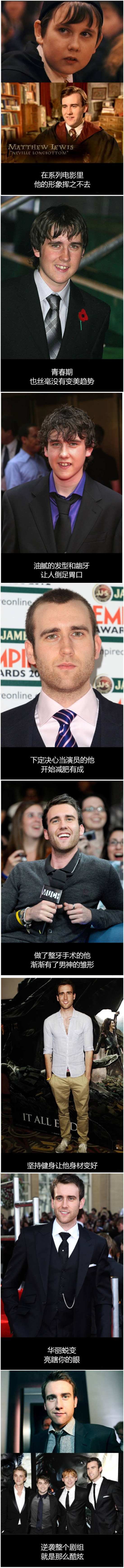 有的人看到这里就心灰了,你可能会说:要穿得窄,也得要底子够啊。可世界上总有一些人不信命,这些人选择用超凡的自制力和行动力来改变自己。例如在《哈利波特》电影里的小胖娃Matthew Lewis。他逼着自己一步一步变美,最后逆袭整个剧组,成为名副其实的衣架子美男。有时候,机会是自己给自己的。男人们,不逼自己,怎么知道未来的可能性有多少呢?窄的资格,你自己也能给自己。